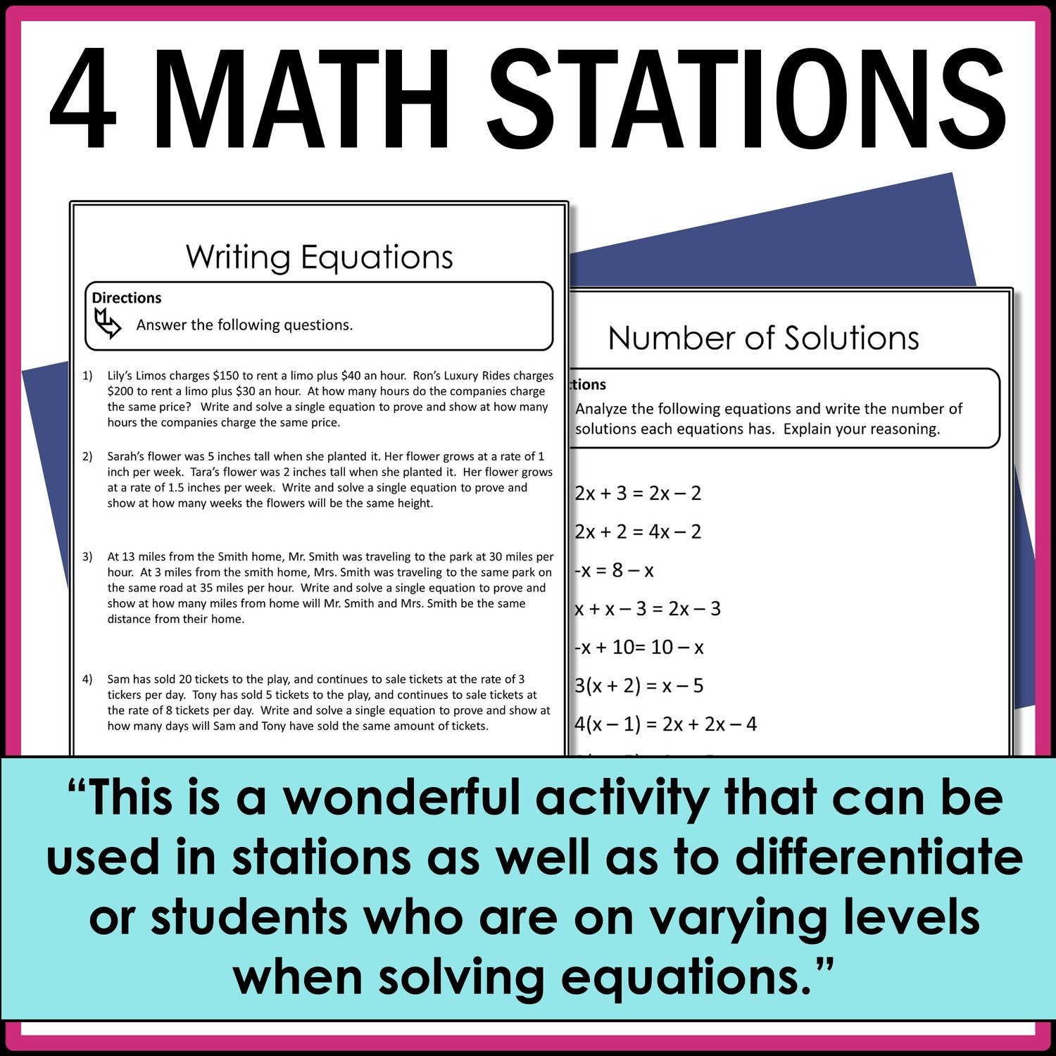 This is a wonderful activity that can be used in stations as well as to differentiate for students who are on varying levels when solving equations!
