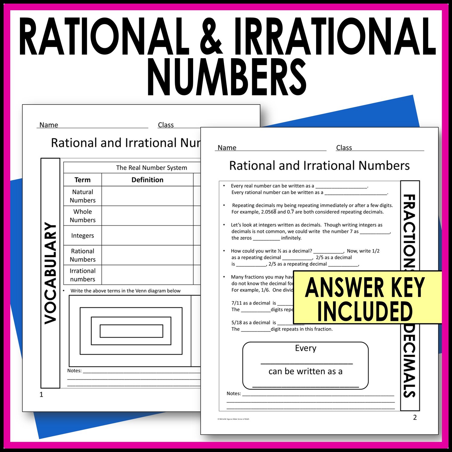 Rational and Irrational Numbers Guided Notes - Real Number System Notes