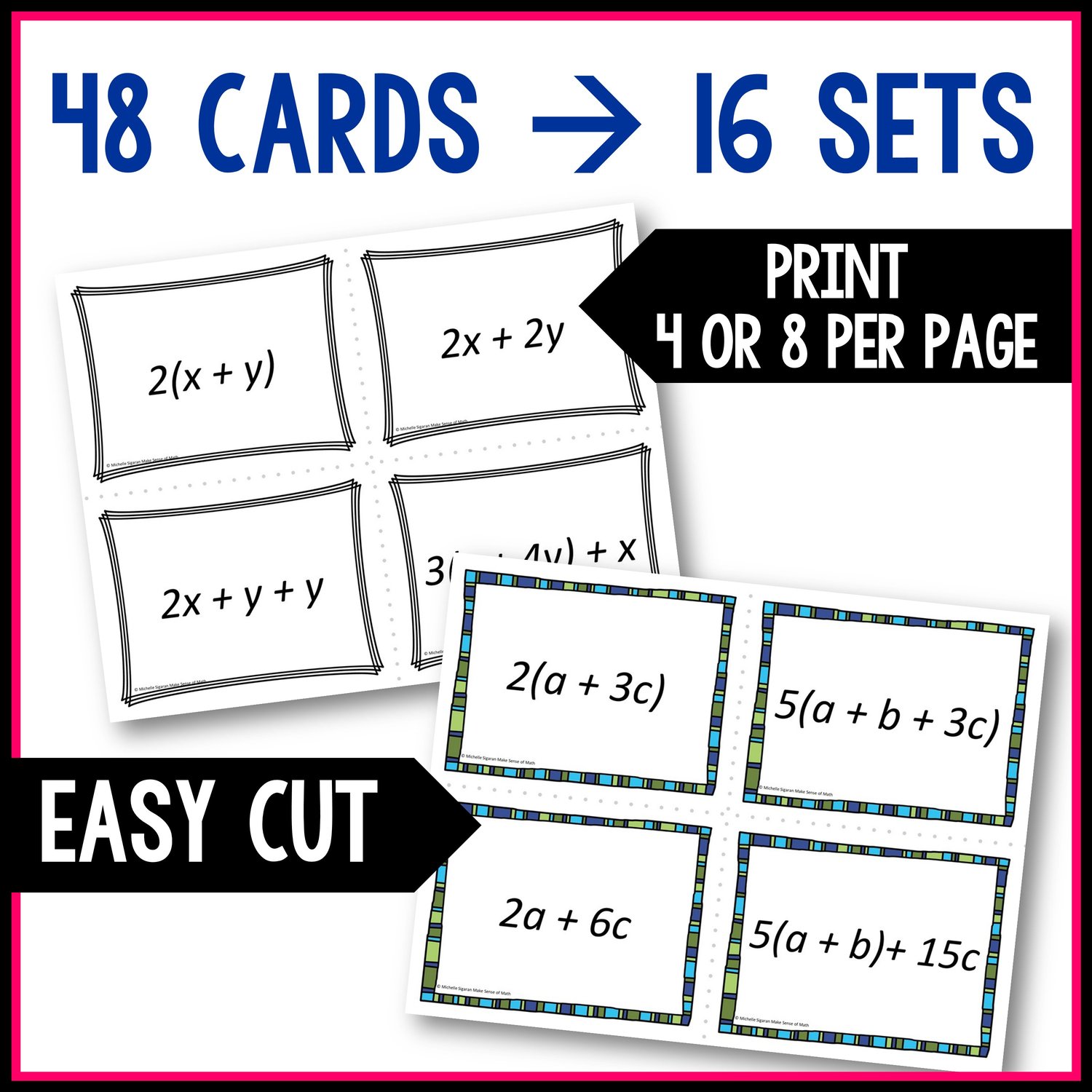 - Instructions to print 4 or 8 to page with easy cut lines