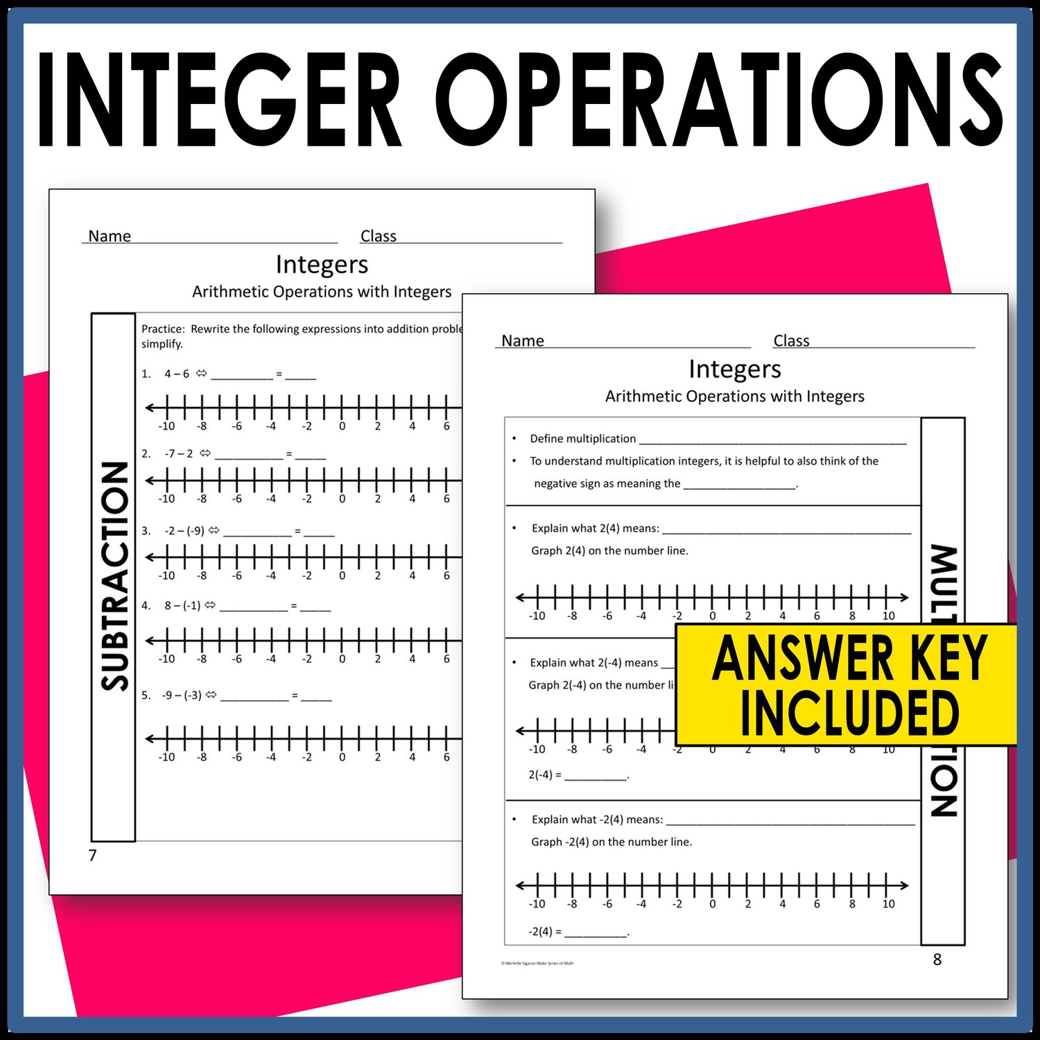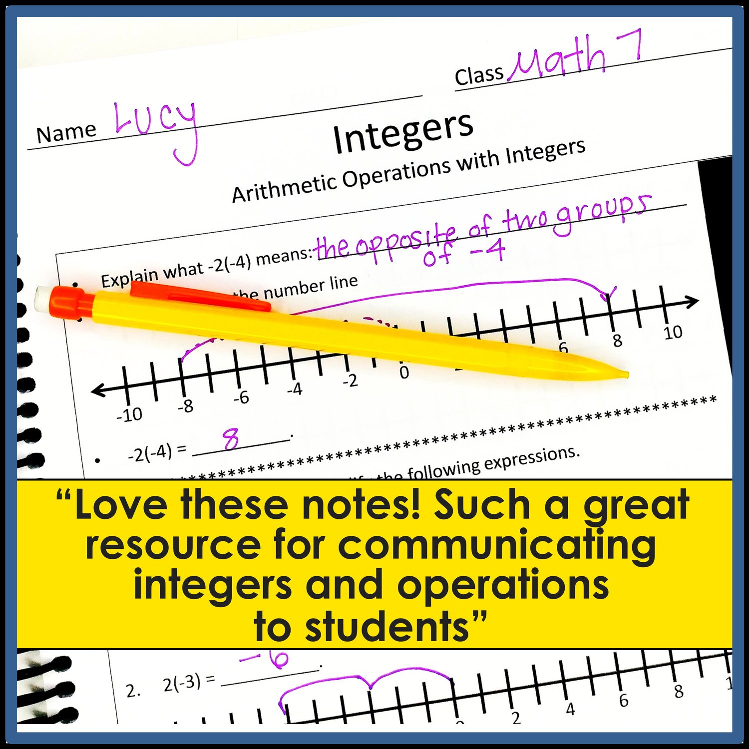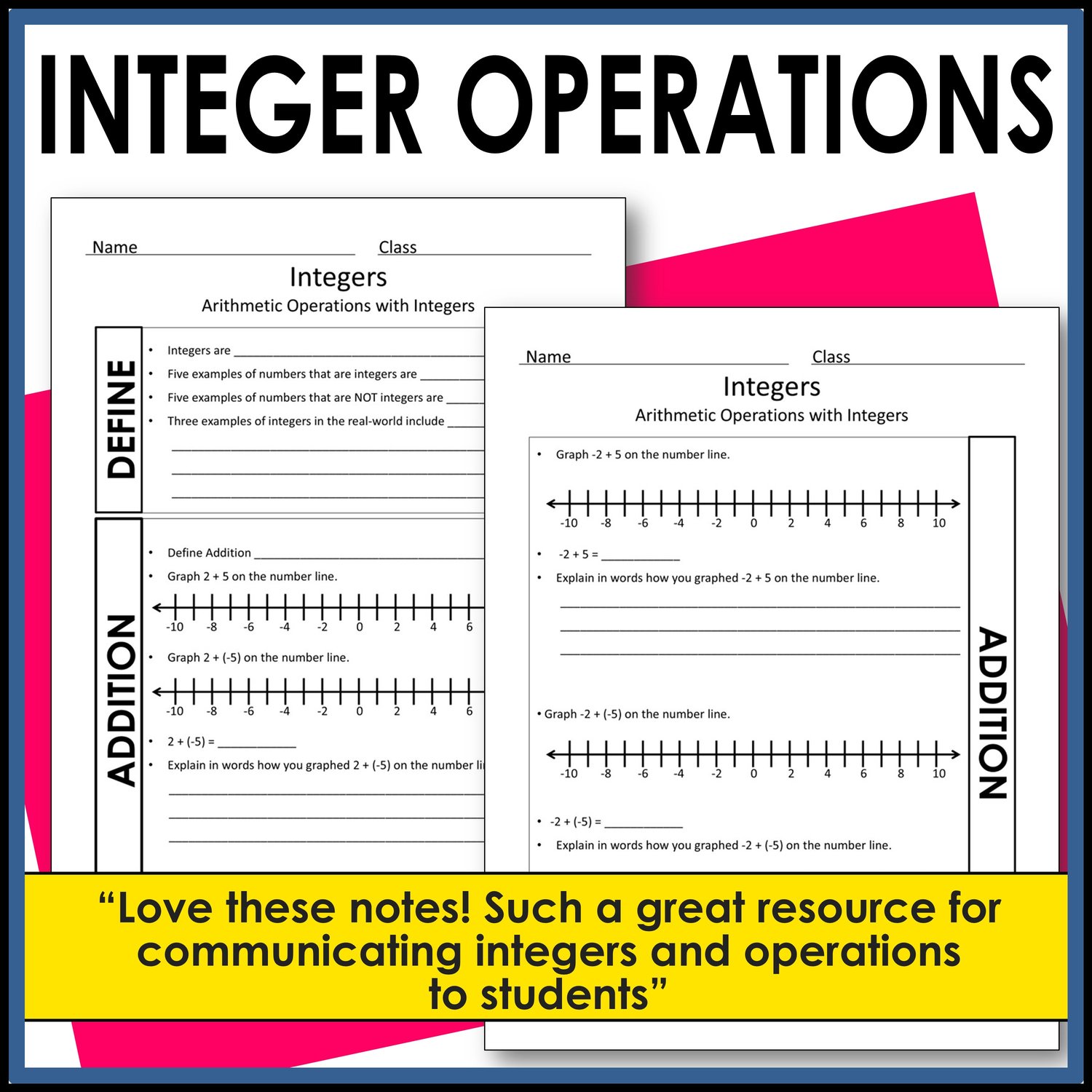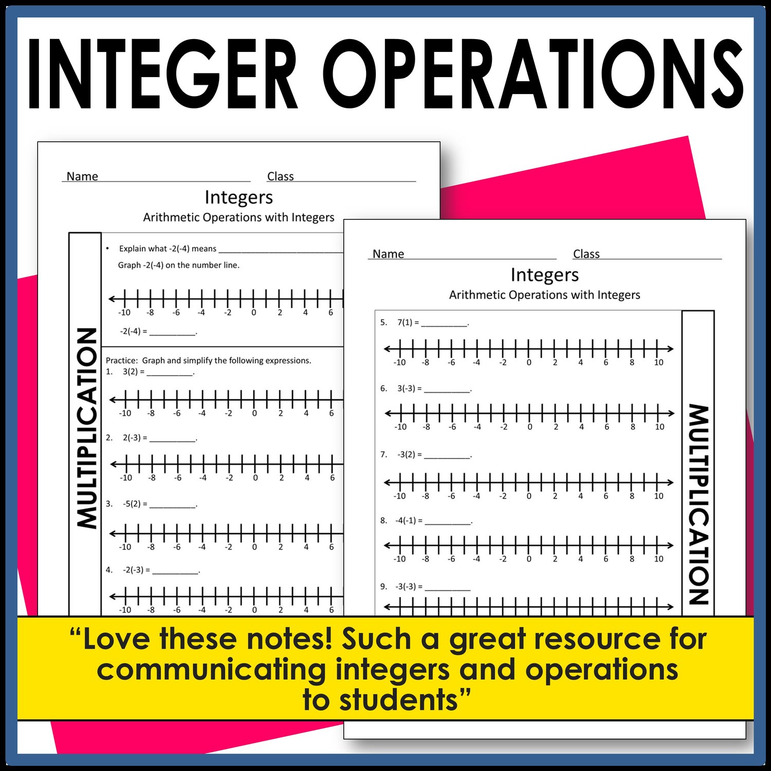 Assist your students in mastering integer operations with these guided notes. These math notes concentrate on adding and subtracting integers, as well as multiplying and dividing them. Emphasis is placed on understanding these operations through modeling on a number line. Aligned with Common Core math standards, the notes also include additional practice problems to enhance fluency.