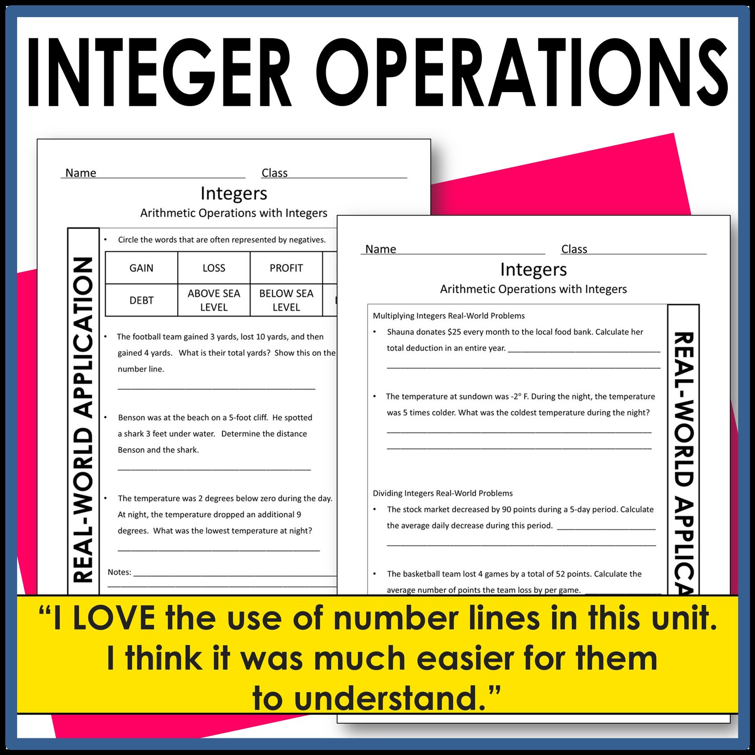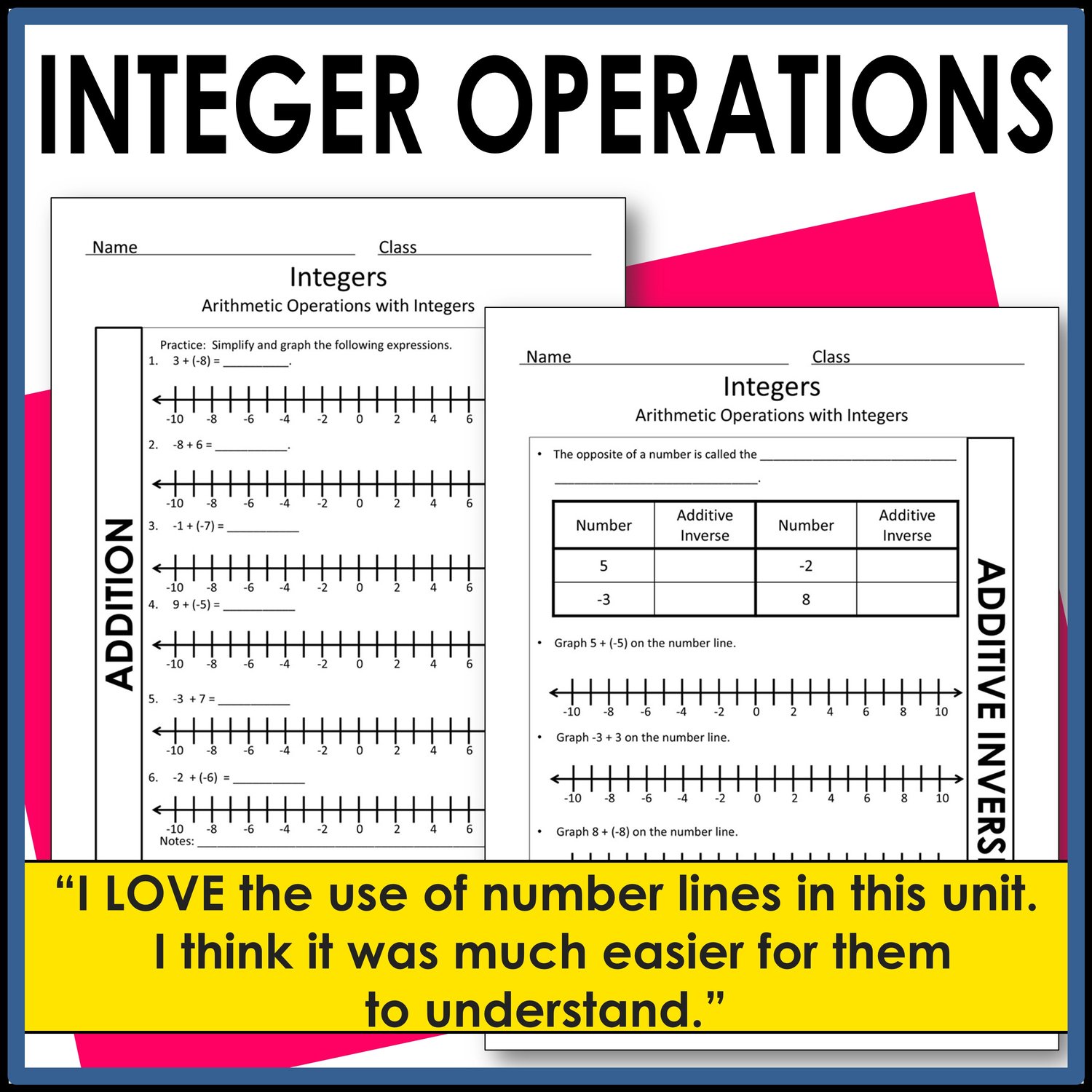 I LOVE the use of number lines in this unit... I love the visual to represent integers. I think it was much easier for them to understand.
