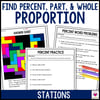Find Percent, Part, & Whole Proportion Stations Activity