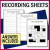 Recording sheets and answer keys are provided