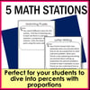 These percent proportion stations are ideal for middle school math students to practice setting up and solving proportions to find the percent, part, and whole. Students will engage in various activities, including creating, solving, and setting up problems involving percent, part, and whole using proportions.