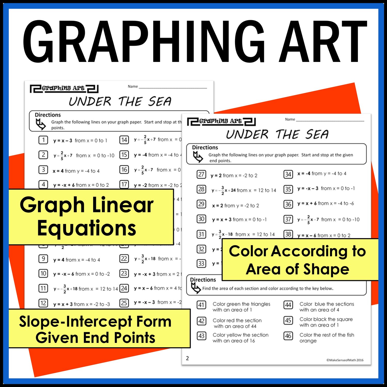 Slope-Intercept Form Graphing Activity Under the Sea, Graphing Linear Equations