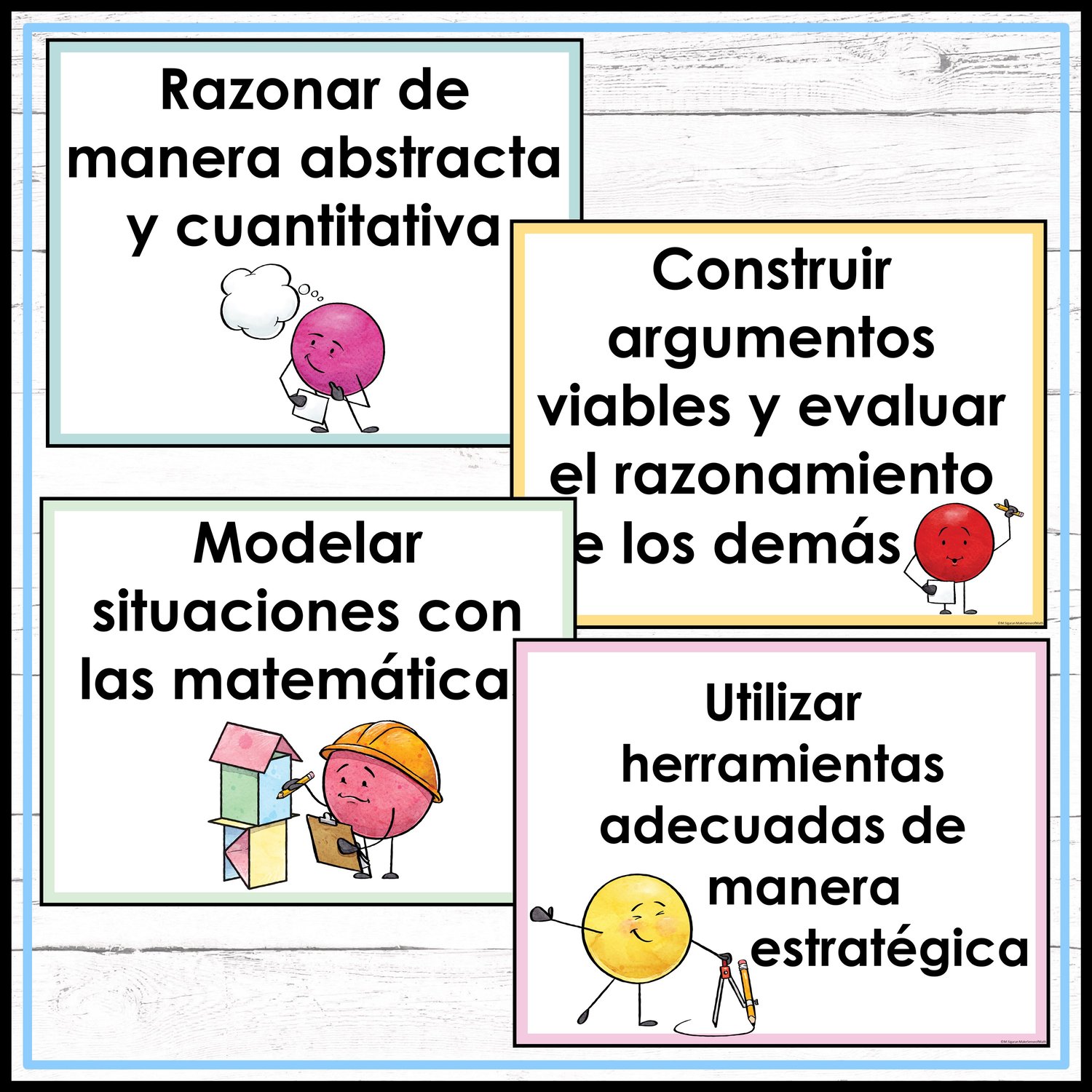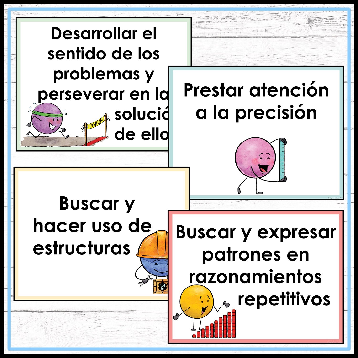 The 8 mathematical practices are essential standards for successfully learning mathematics. Support your students in remembering these standards with these fun, colorful, and high-quality posters in SPANISH! Displaying them in your classroom provides a convenient reference while you teach.