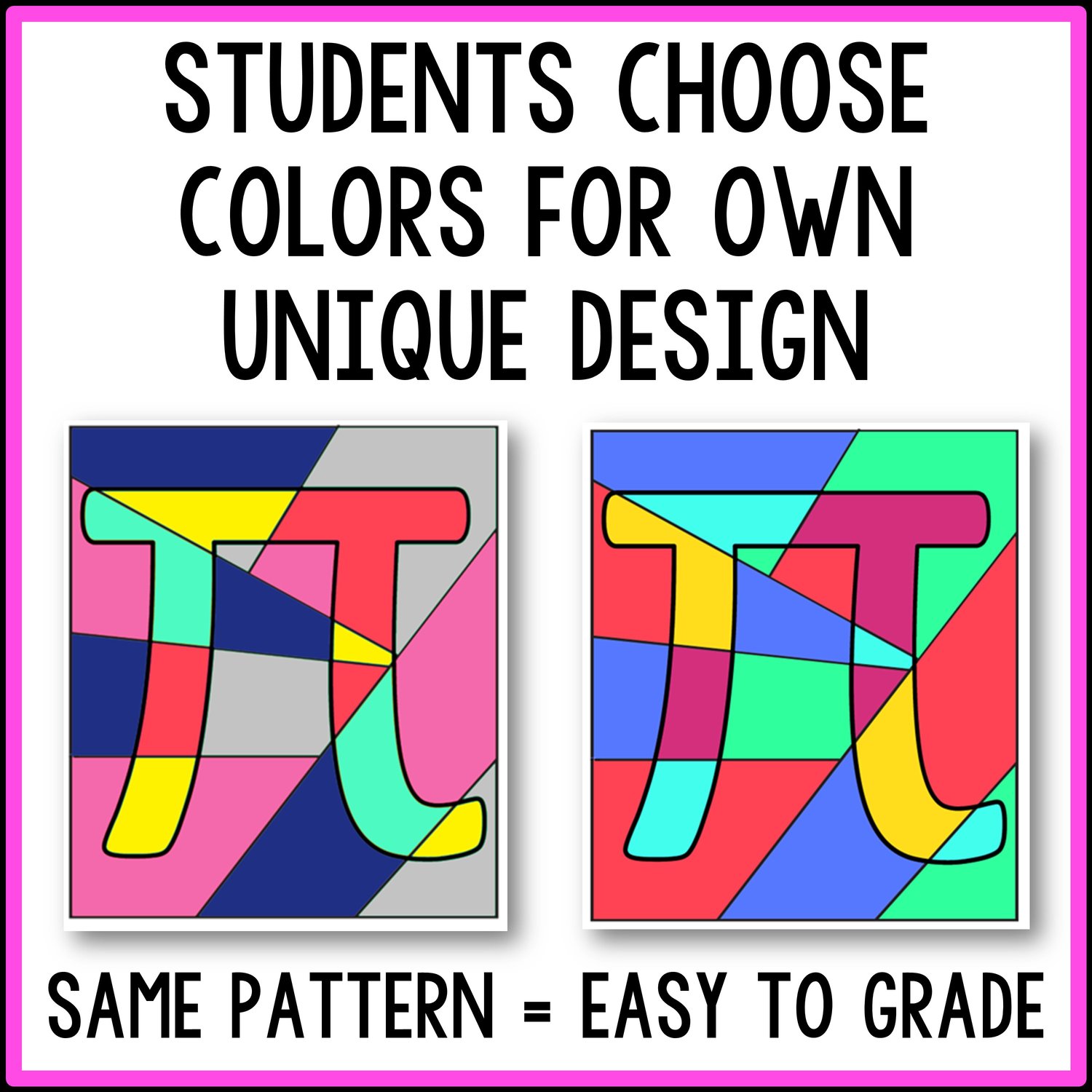 Students choose their own colors for the coloring page. The pattern will be the same, so it is still easy to grade, but the variety in colors will engage your students in creating their own unique picture.