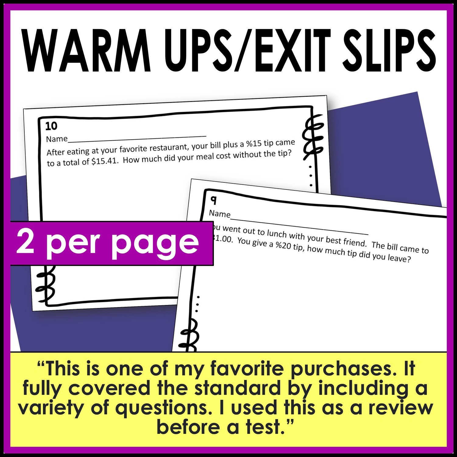 - Half-sheets to use as warm-ups or exit slips
