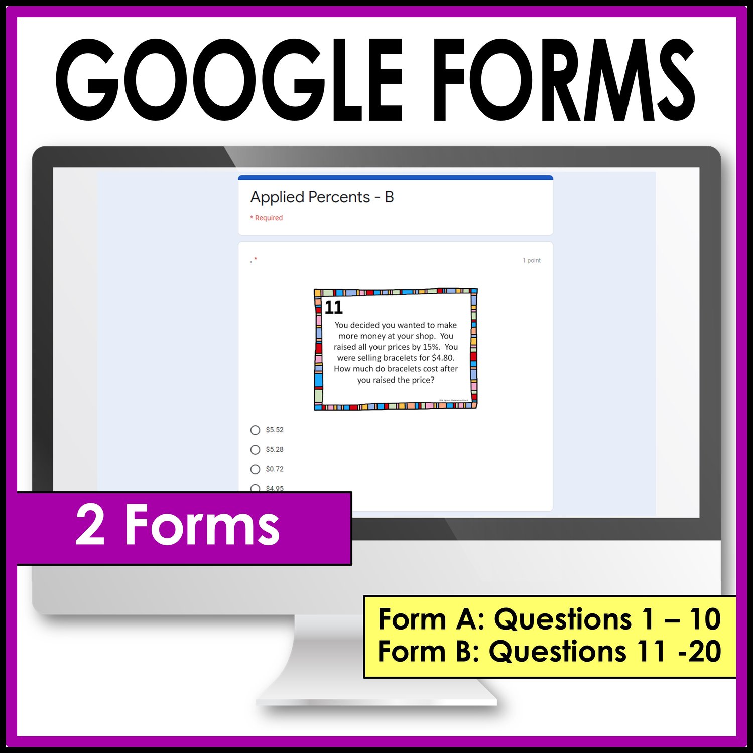 - Google Forms (Form A: Questions 1 - 10, Form B: Questions 11 - 20)