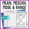Mean Median Mode Range Coloring Activity Measures of Central Tendency Worksheet