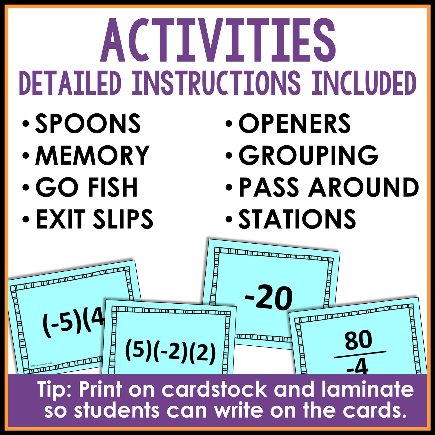 - 8 detailed explanations of ways to use these task cards in your classroom including: games, activities, stations and more. SEE PREVIEW