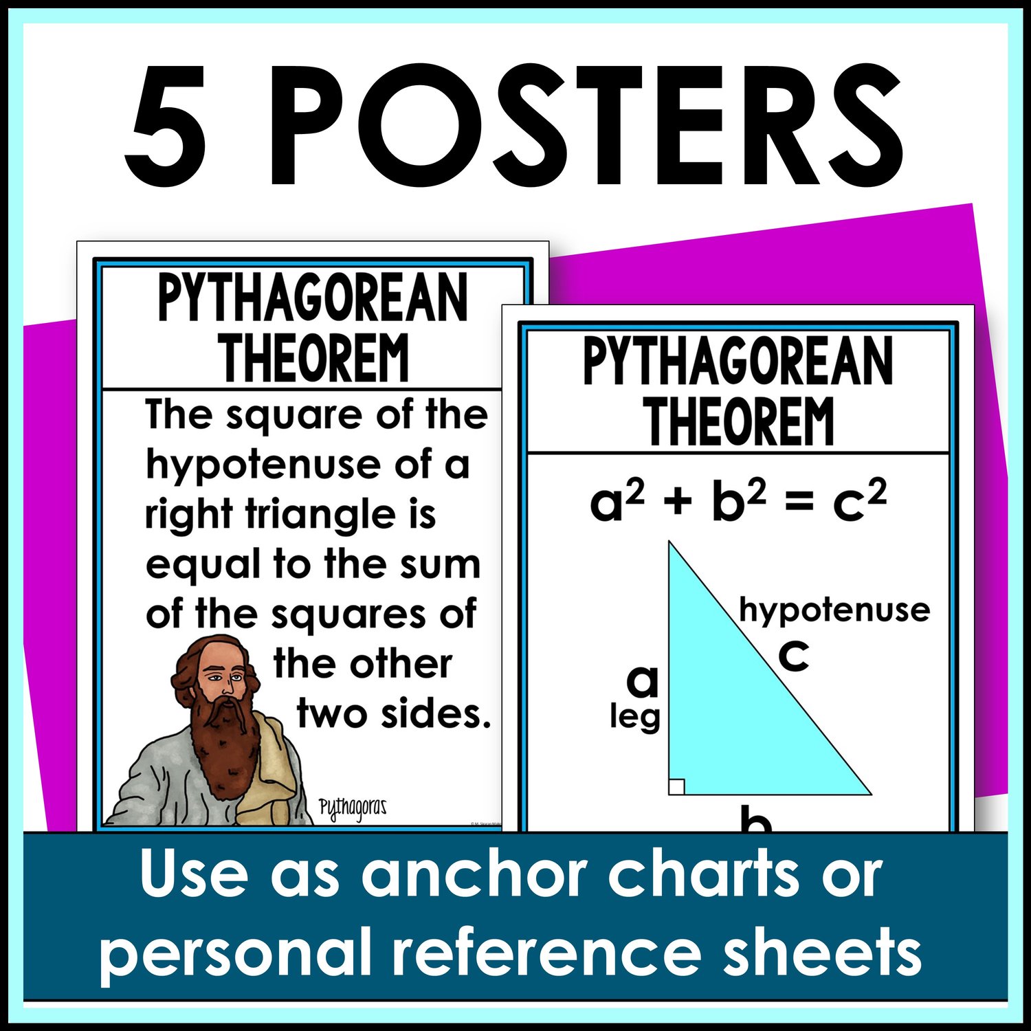 Do you teach the Pythagorean Theorem? Check out these Pythagorean Theorem anchor charts or personal reference sheets that include visuals, models, proofs and examples of the Pythagorean Theorem. Perfect to help your 8th grade math and Geometry students understand and make sense of the Pythagorean Theorem.